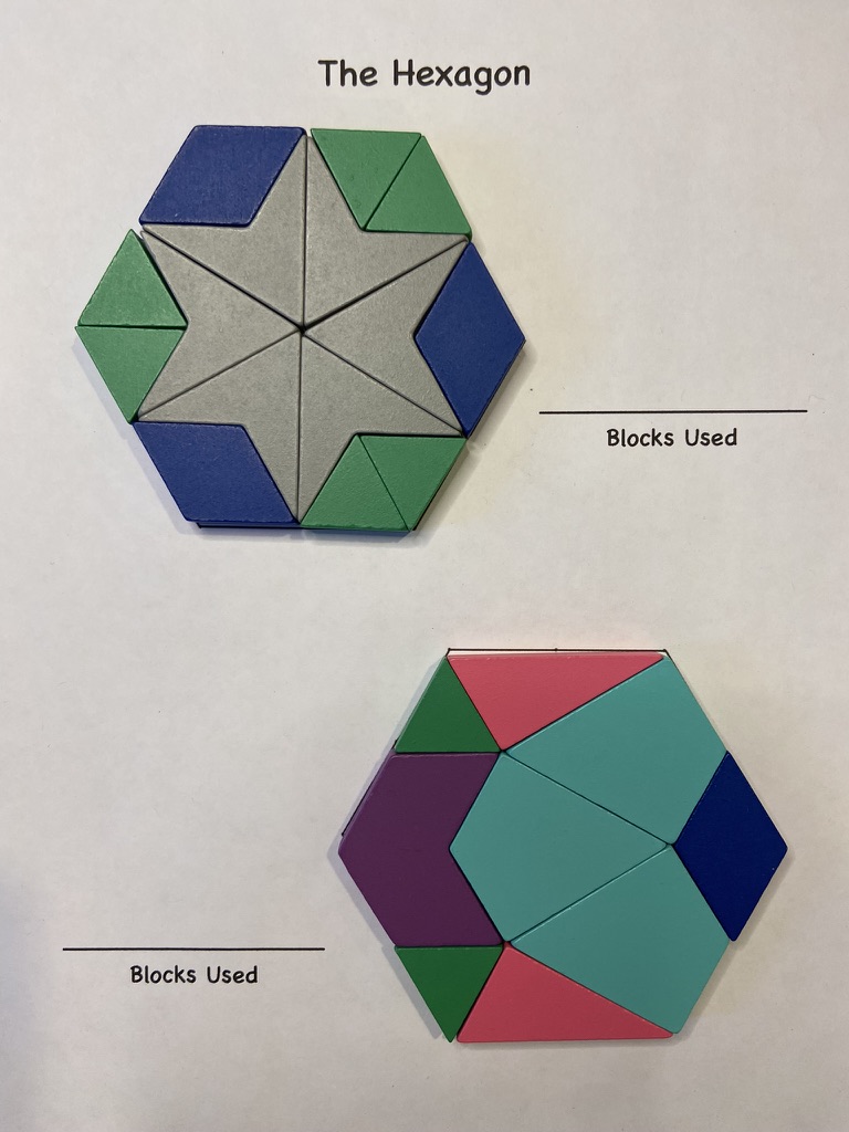 Note: these work best with Upscale or 21st Century Pattern Blocks. If you’re using classic pattern blocks, remove the orange squares and tan rhombuses before you begin.