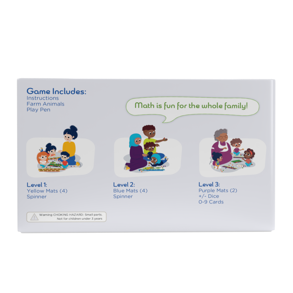 Good Morning Farm contains three levels of play to engage children between the ages three to five in developmentally appropriate math play. By moving the farm animals in and out of the barns, kids lay the foundation for understanding addition and subtraction – central concepts in mathematics. Kids will love the farm animals figures included in the game too!