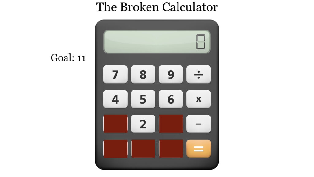 Broken Calculators are one of the most versatile and delightful openers I know. The image itself communicates the heart of the puzzle, while leaving students open to all manner of different and personal approaches to reaching the goal.