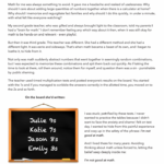 Finally, I’d found someone who can verbalize the beliefs that have been rattling around in my gut all these years. There aren’t math brains and non-math brains. There are rich, authentic, and relevant ways of teaching math and there are not.