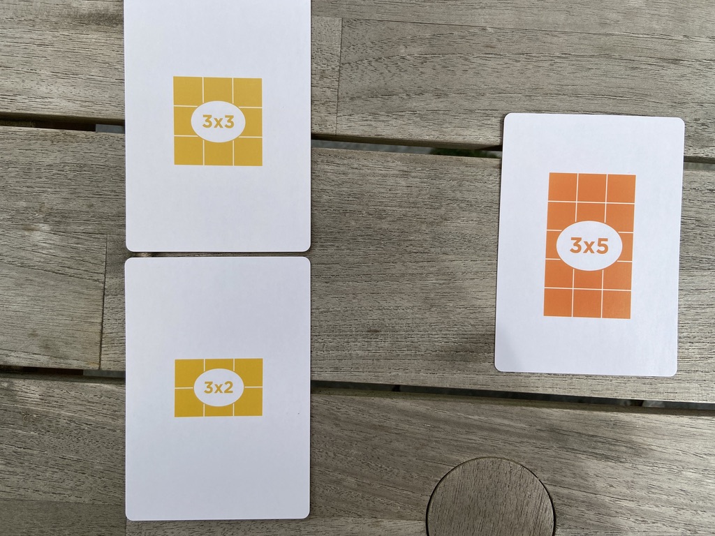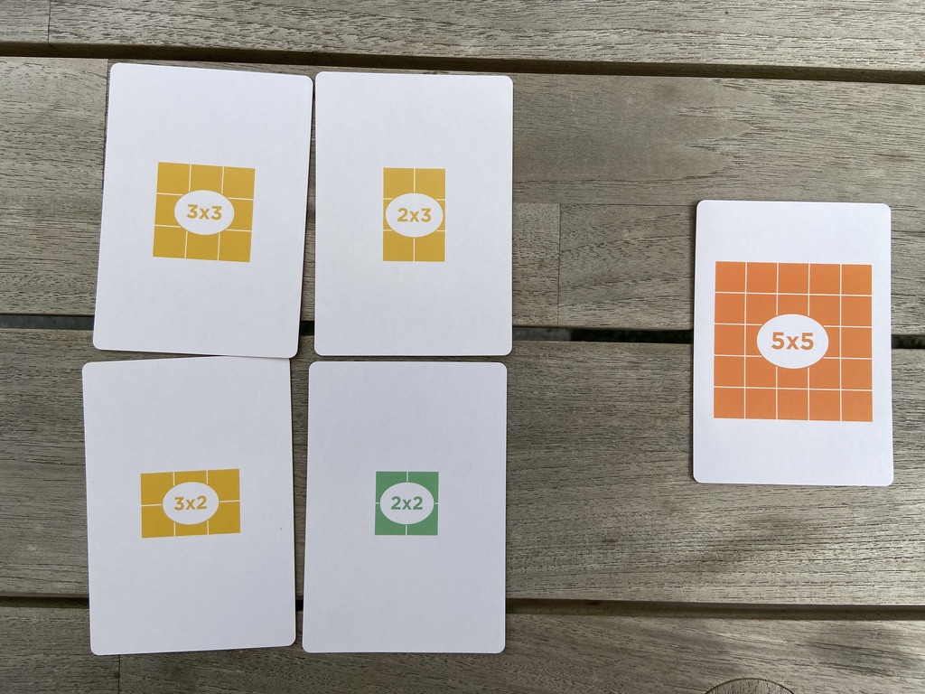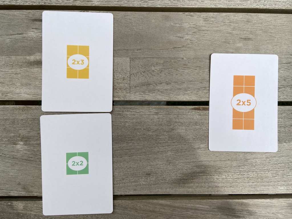 Now if you’re looking for a puzzle to see how well you (or a kid, perhaps) grasps all this, let me pose one for you. Find four cards (representing arrays) that add up to 5 x 5, but that are not the four cards from this picture.