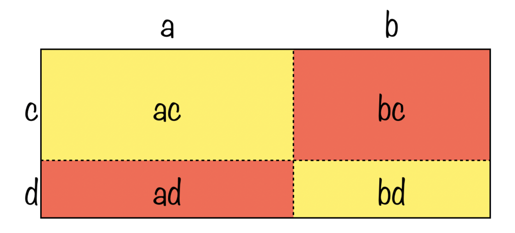 A more general formulation is the old “FOIL” rule you learned in algebra class: