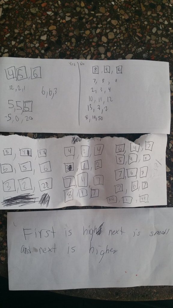 Thx @MathforLove for teaching me about 2 4 6. I’ve been playing with my 9 year old for the last hour. The bottom slip was the rule he made. pic.twitter.com/Z46P4ymVbT